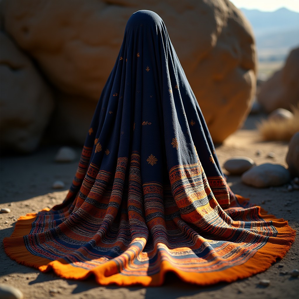On the steppe, you learn to read patterns in everything. The way grass bends before wind. The geometry of a hawk circling. My ancestors encoded this reading into felt — interlocking shapes that describe mountains, rivers, sky, without ever depicting them directly. I spent six months translating shyrdak geometry into a flat image that could be pressed from a wooden stamp. It was harder than I expected. Felt patterns are three-dimensional — they are sewn, not printed. The logic of the needle is different from the logic of the galib. I finally got it by working backwards. I took photographs of my grandmother’s shyrdak — the one she made for my mother’s wedding — and traced just the edges of the colour fields. Those edges, flattened onto wood, became my stamp. When Narmin presses that stamp into Shaki silk with her pomegranate dye, the steppe will have travelled further from home than any Kazakh nomad ever did. I think my grandmother would find that funny. I find it necessary.