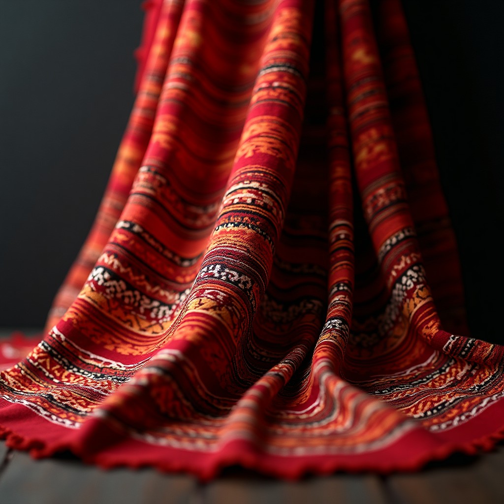 I preserve the shyrdak felt art of Kyrgyzstan — bold interlocking geometries that represent mountains and rivers. On silk, the same patterns become something lighter, something that moves.