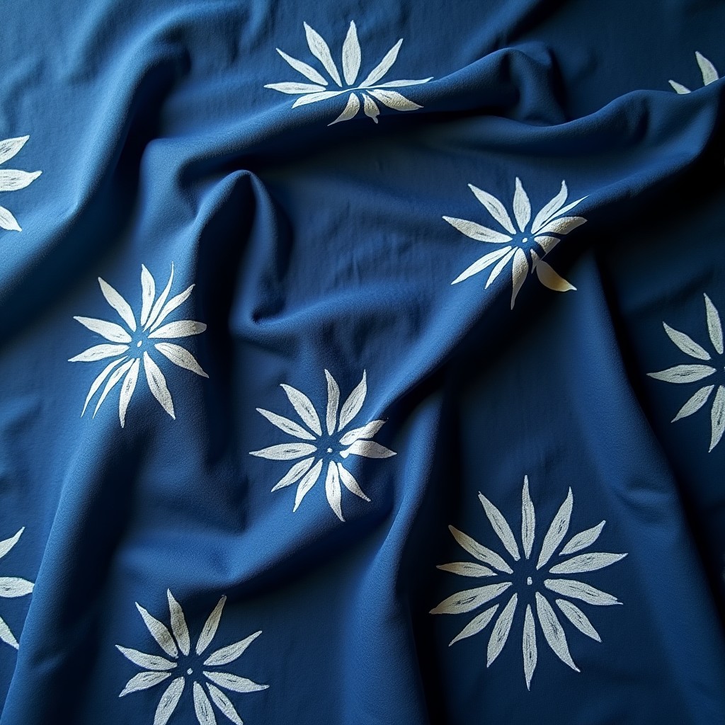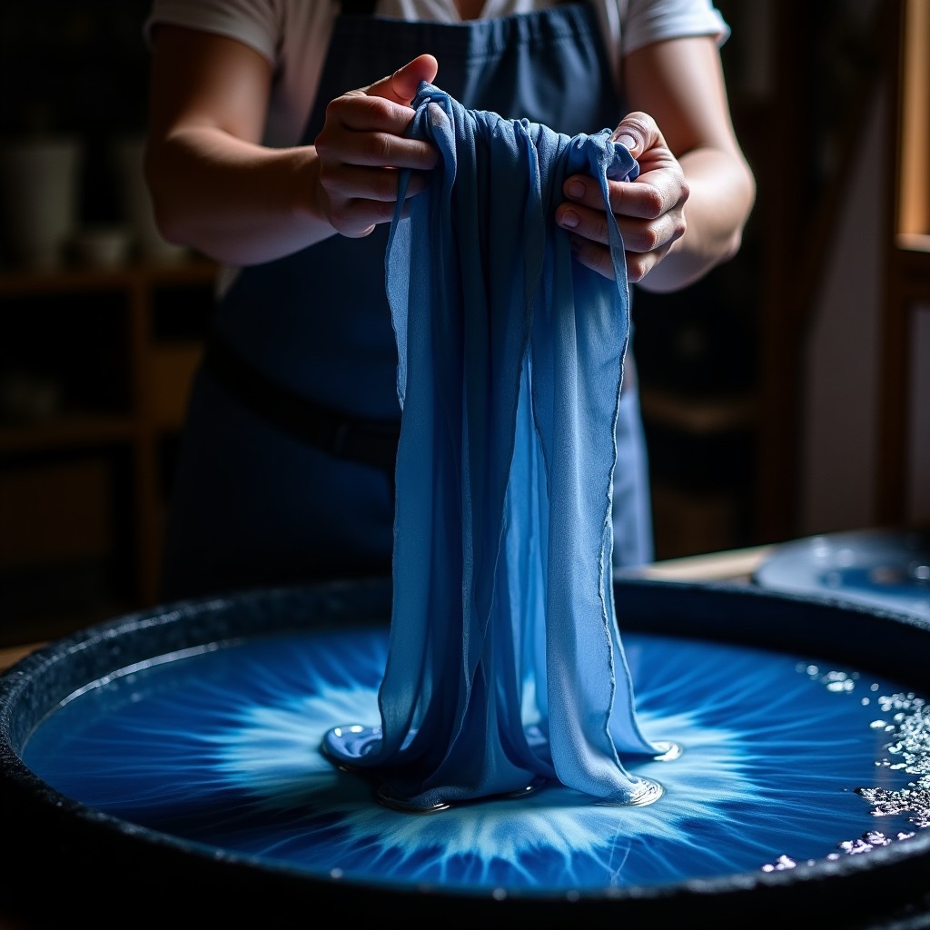 Yuki Tanaka is a Kyoto-based artist trained in the traditional Japanese dyeing technique of shibori — a resist-dyeing method that creates patterns through folding, twisting, and binding silk before submersion in natural indigo dye baths. She trained for seven years under master dyer Hiroshi Murata in the Nishijin district. Her designs carry the quietude of a Zen garden.